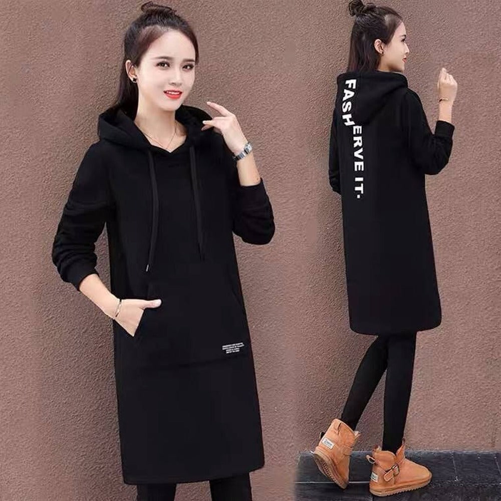 Stay comfortable and stylish in this Winter Warm Long Fashion Hooded Dress for Women. Designed to provide ample warmth with its long length and cozy hood, this dress offers both functionality and fashion. Its tailored fit ensures a flattering silhouette, while the soft fabric keeps you insulated during cold days. Perfect for casual outings or layering under a coat, it combines practicality with modern design for versatile winter wear.